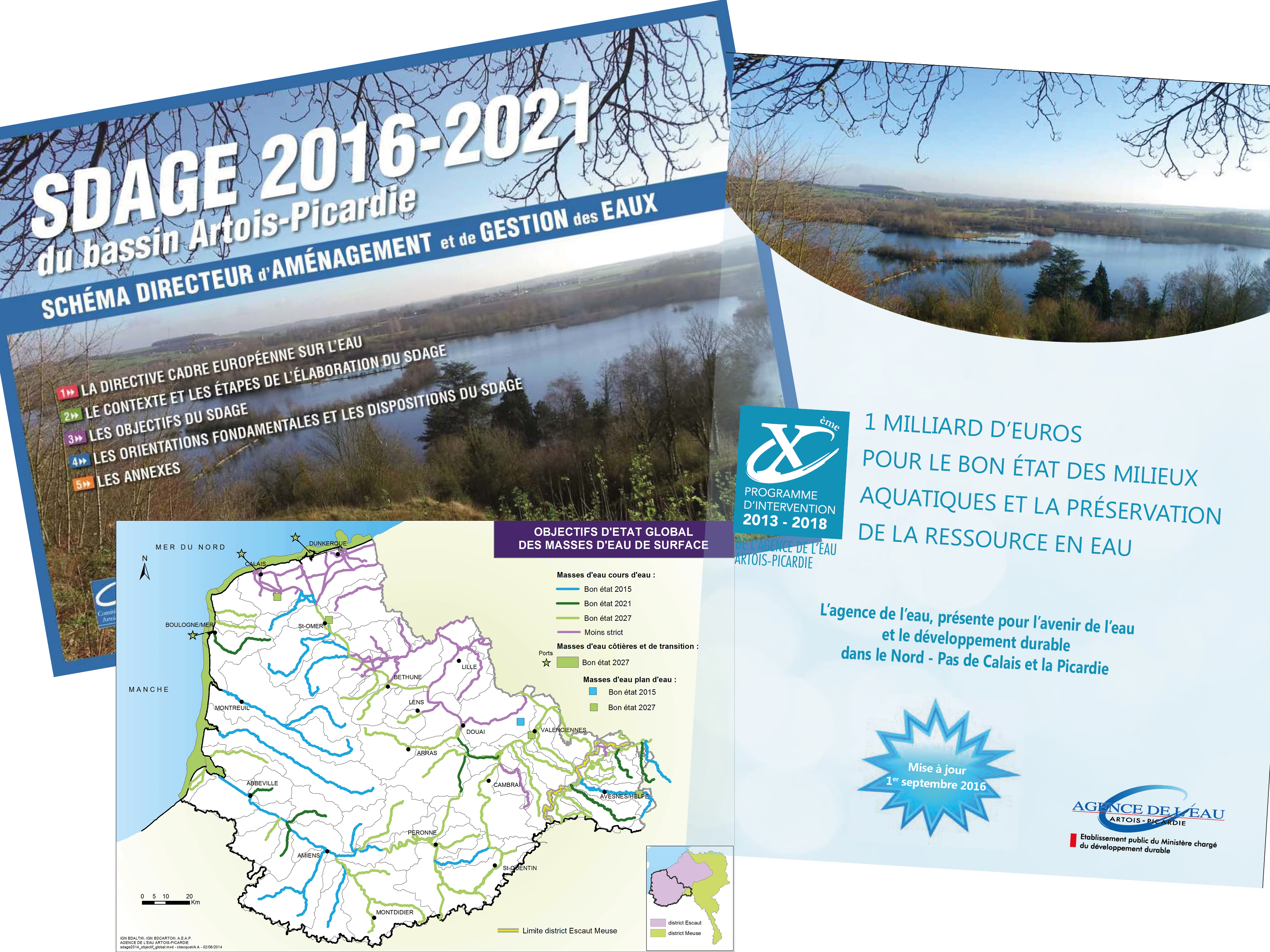 L'Agence de l'eau Artois-Picardie produit des documents de référence sur l'eau dans le bassin : Schéma Directeur d'Aménagement et de Gestion des Eaux (SDAGE), programme d'intervention, annuaires qualité... Les principales cartes et données de ces documents sont regroupées sur cette page pour faciliter leur accès et leur réutilisation.