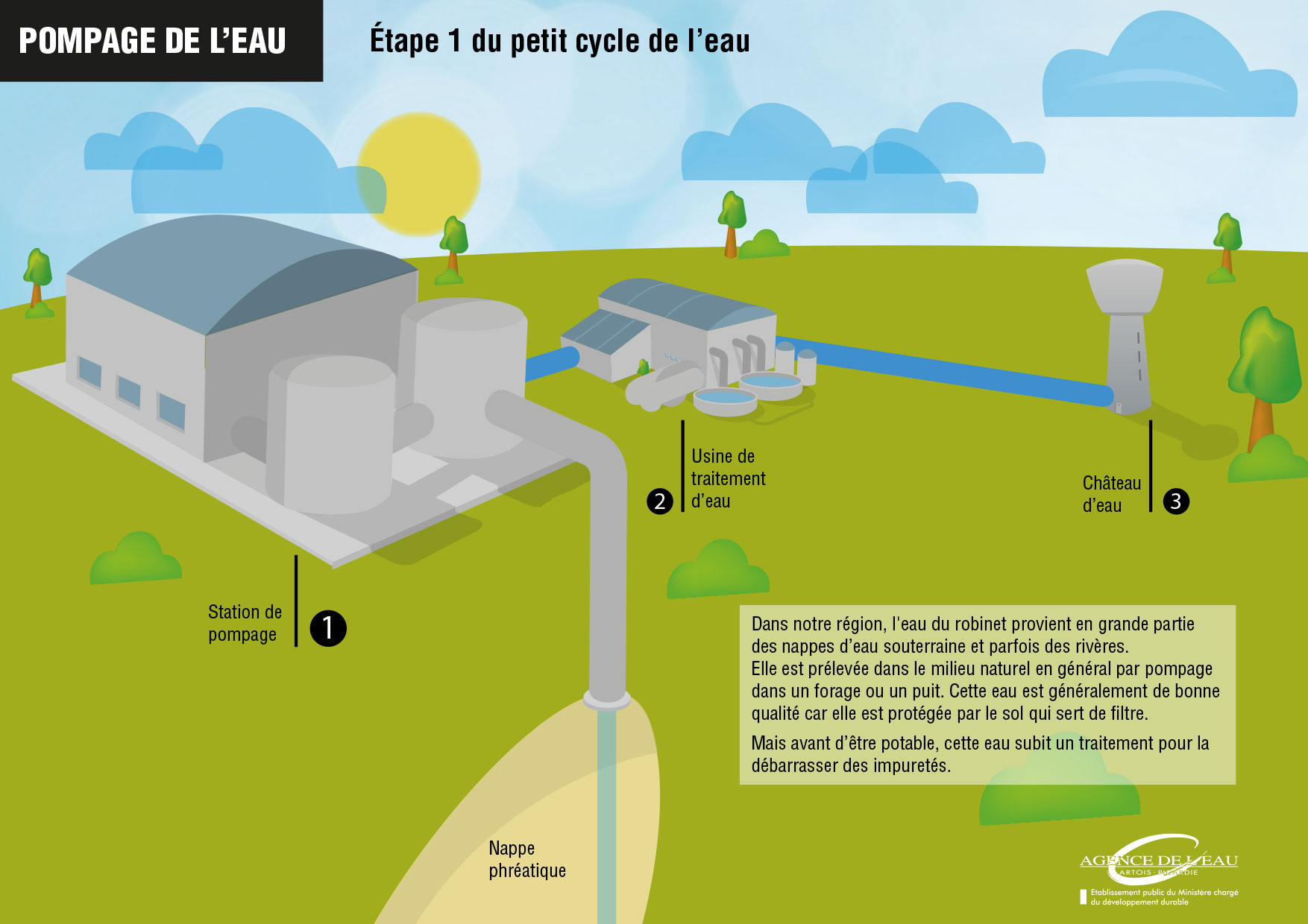 Pompage de l'eau - Etape 1 du petit cycle de l'eau