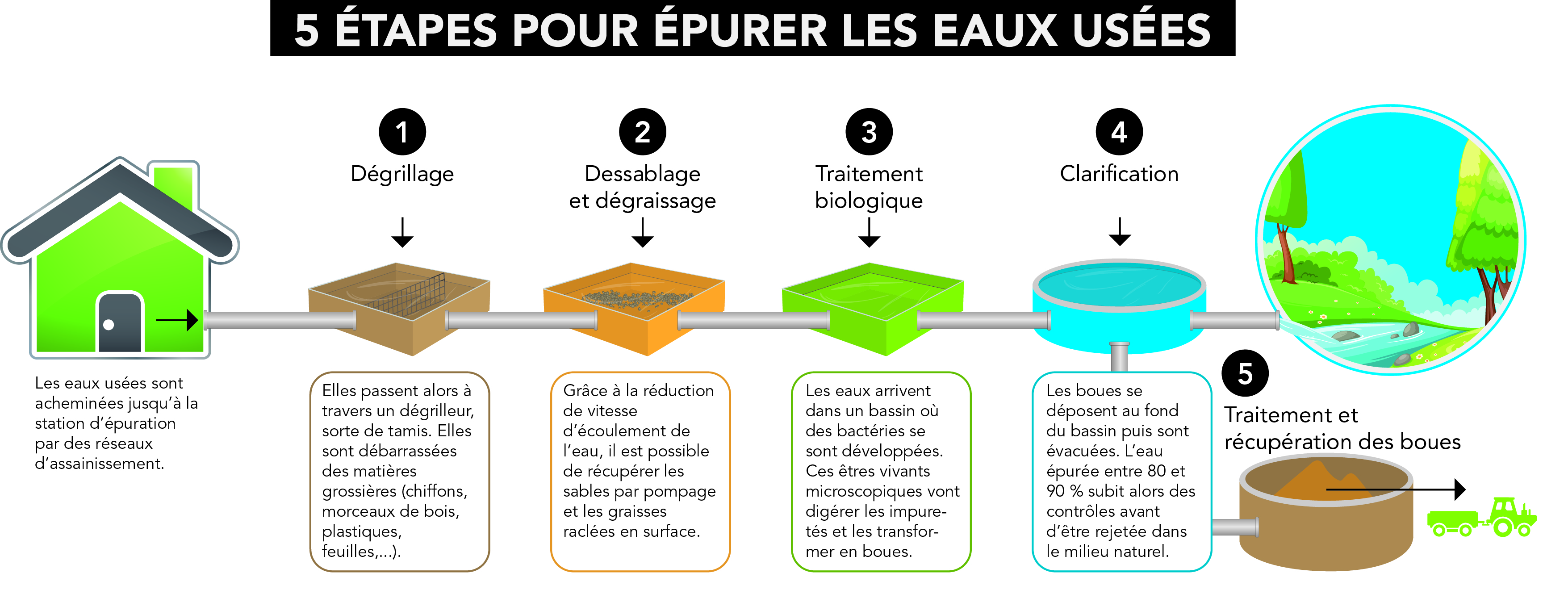 Le traitement des eaux usées - Etape 5 du petit cycle de l'eau