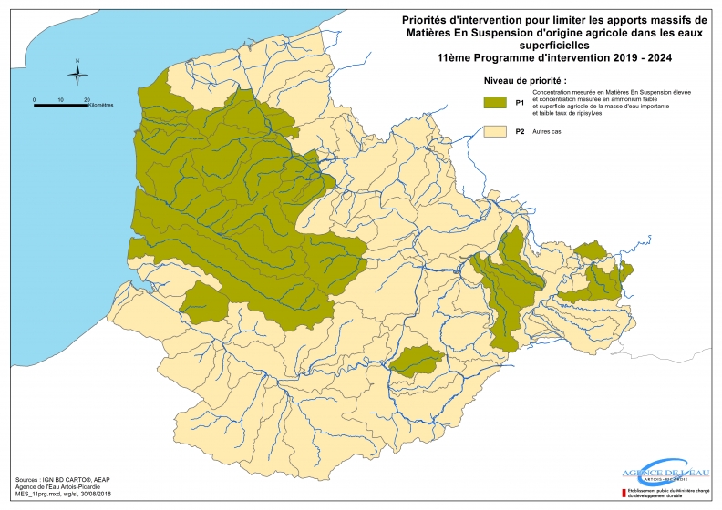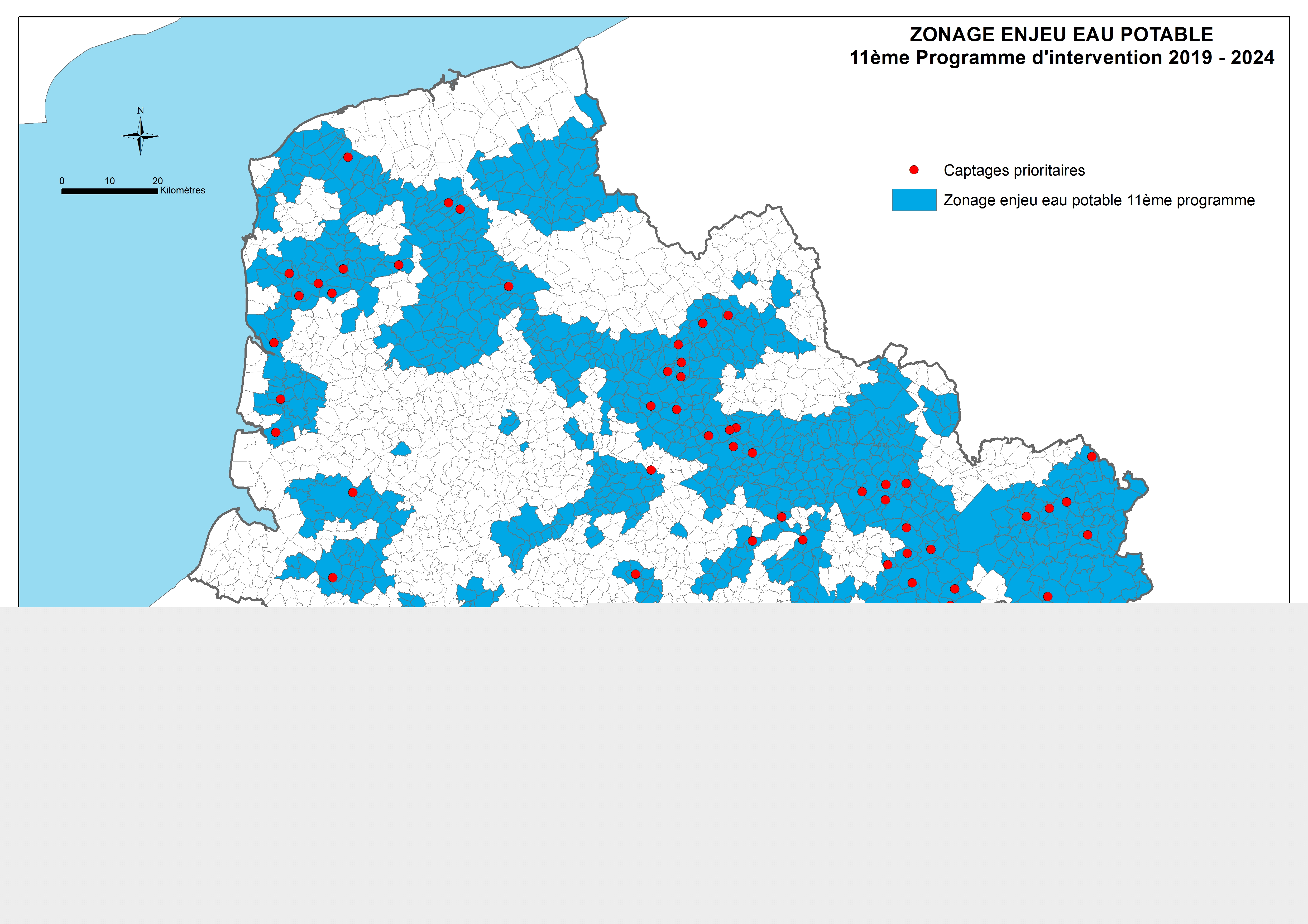 Différents zonages ont été définis pour orienter la mise en œuvre des politiques d’intervention de l’Agence au cours de la période 2019-2024. Cette carte représente le zonage enjeu eau potable