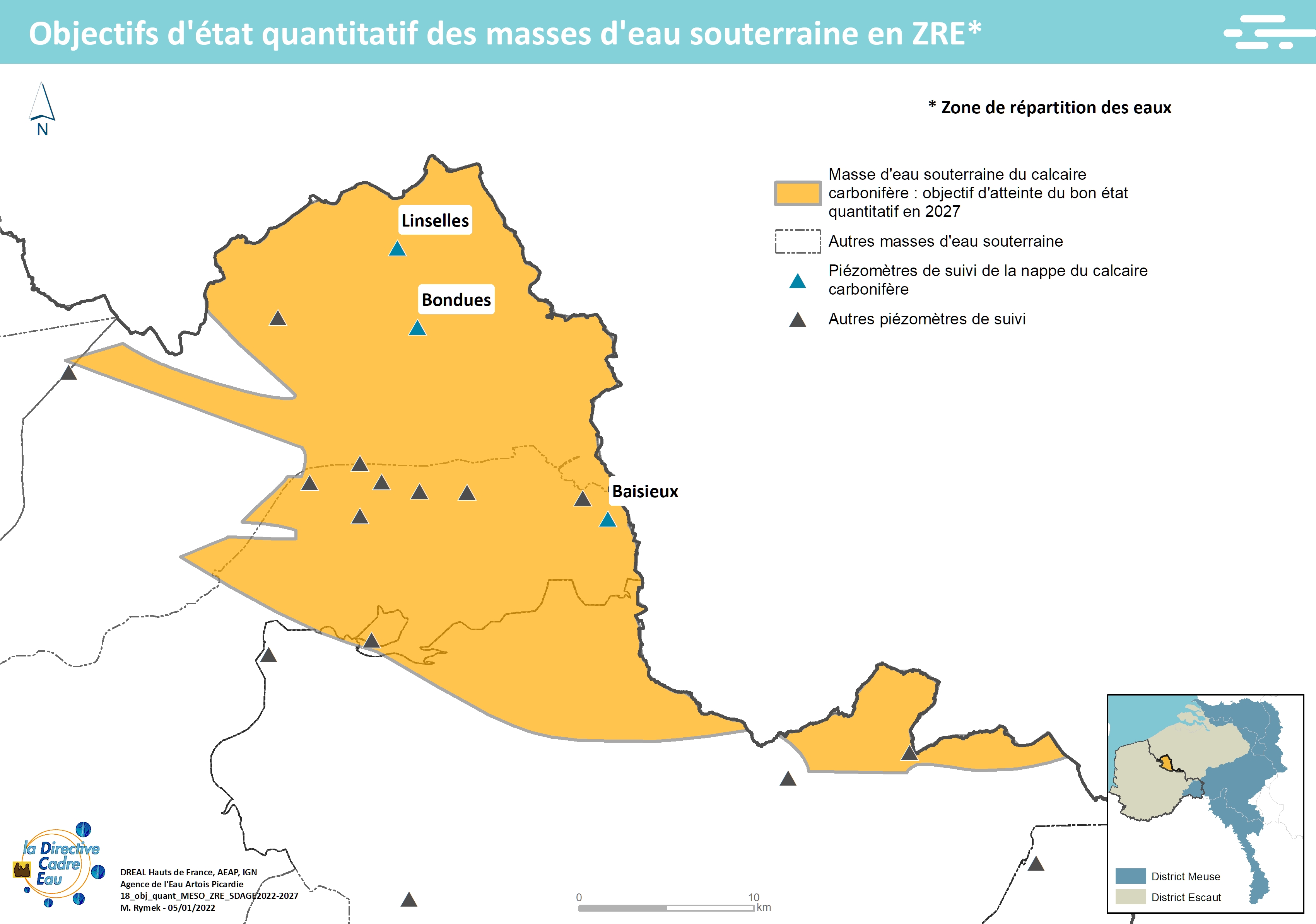 Cette carte issue du SDAGE 2022-2027 présente les objectifs d'état quantitatif des masses d'eau souterraine en ZRE (Zone de répartition des eaux)